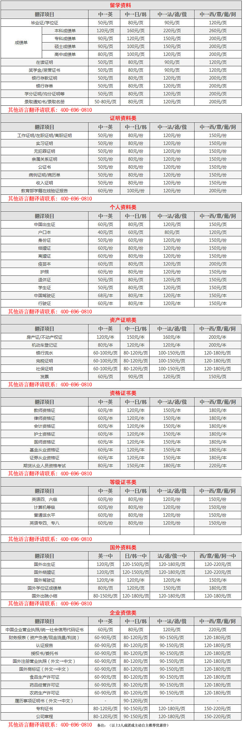 证件翻译盖章参考价