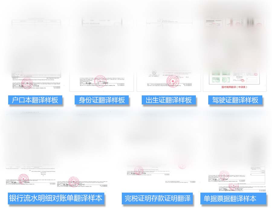 学历学位证书翻译、成绩单翻译、身份证翻译、驾驶证翻译、户口本翻译、出生证翻译、营业执照翻译、房产证翻译、病历翻译等专业证件翻译盖章认证;
